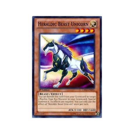 Card Text: You can banish this card from your Graveyard to target 1 Psychic-Type Xyz Monster in your Graveyard; Special Summon it. Its effects are negated. You can only use the effect of "Heraldic Beast Unicorn" once per turn.
